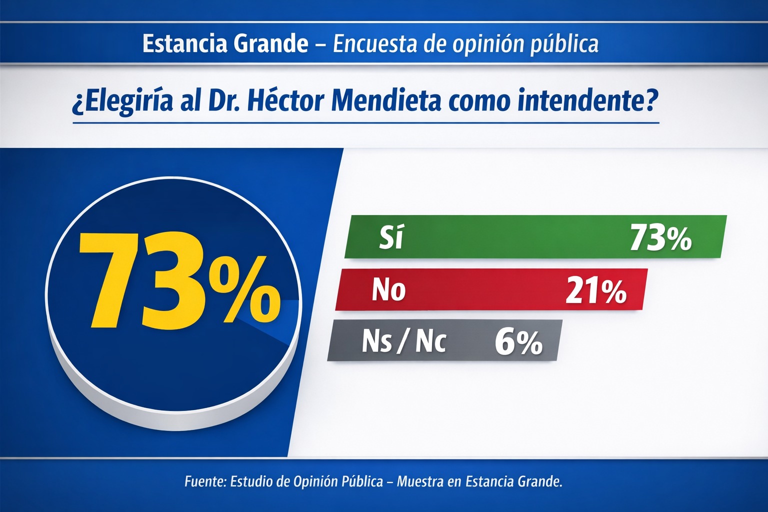 Ante la reiteración de esa referencia, se decidió avanzar con una pregunta directa para medir la percepción de los vecinos: “si elegirían o no al Dr. Héctor Mendieta como futuro intendente de la localidad”.