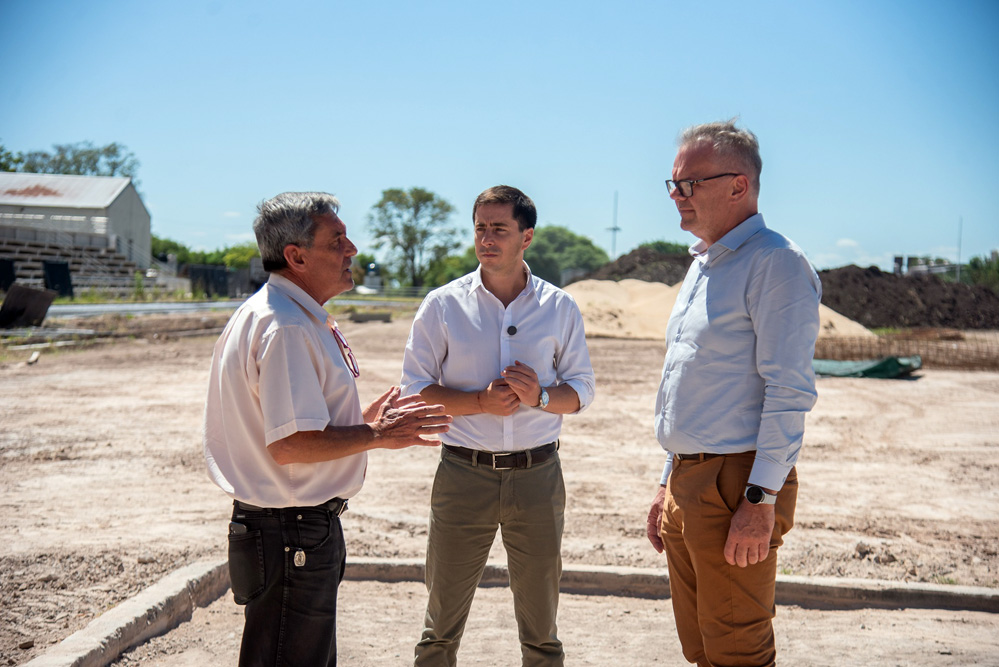 El secretario general de la Gobernación, Mauricio Colello, y el ministro de Planeamiento e Infraestructura, Hernán Jacob, recorrieron este jueves la obra de la pista de atletismo del Parque Berduc, en la ciudad de Paraná, que ya supera el 71 por ciento de avance.